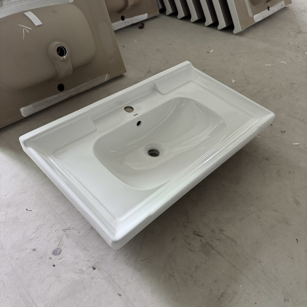 Toilets and wash basins with durable glaze, rimless flush, and elegant designs